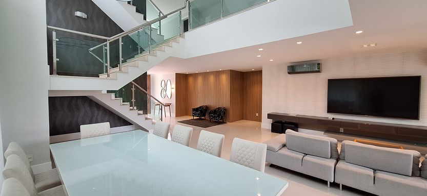 Apresentamos esta imponente Casa Triplex com 552m² de área construída em um generoso terreno de 623m², localizada em um dos condomínios mais desejados e sofisticados da Barra da Tijuca.
