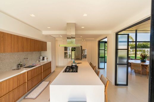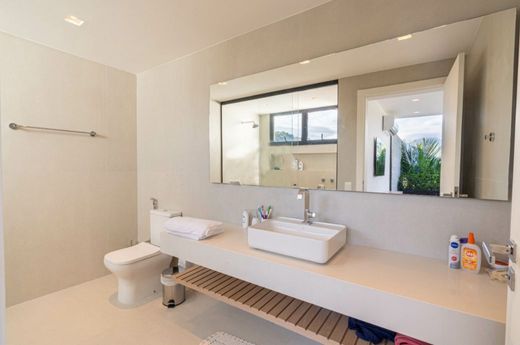 O imóvel conta com seis suítes amplas e completas, além de dependência com quarto e banheiro, totalizando nove banheiros. Com capacidade para seis vagas de garagem, a casa acomoda família e convidados com praticidade. O acesso às dependências do hotel, por meio do cartão RP, proporciona ainda mais conveniência e estilo de vida resort.
