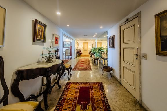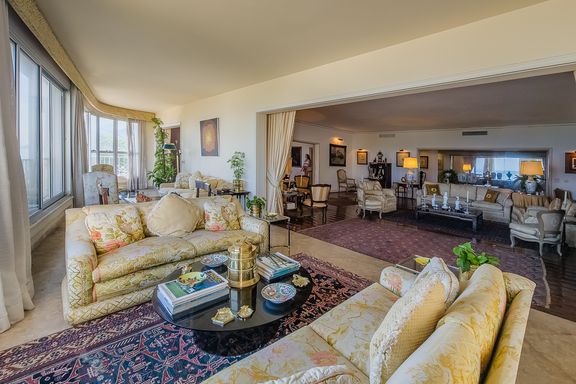 O edifício, de apenas quatro andares e um apartamento por piso, reúne uma vizinhança seleta e atmosfera tranquila, com a elegância e o charme de um endereço raro em Ipanema. Com aproximadamente 630 m², o imóvel impressiona pelo espaço, pela vista e pelo projeto arquitetônico clássico.