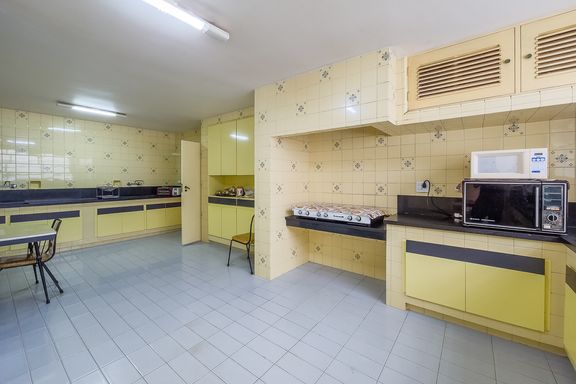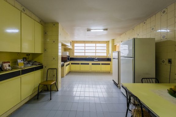 Na parte de serviço, a funcionalidade e o espaço se destacam: cozinha, copa, despensa, sala de almoço, sala para pratarias e louças, além de quatro dependências de funcionários e um banheiro de apoio.