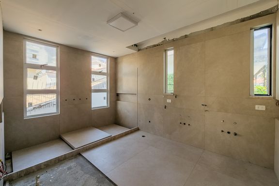 No segundo pavimento, o conforto se eleva com quatro suítes amplas, incluindo uma suíte master espetacular, com banheiro duplo, closet, sala íntima, copa de apoio, oratório e varandas voltadas para o verde. Todos os espaços são banhados por luz natural e cercados pela vegetação exuberante do entorno.