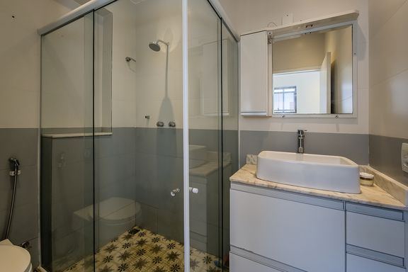 O prédio é imponente e bem cuidado, com jardins, guarita, porteiro 24h, bicicletário, garagem e toda a segurança de um condomínio fechado com circuito de monitoramento. Pet friendly e pronto para morar.